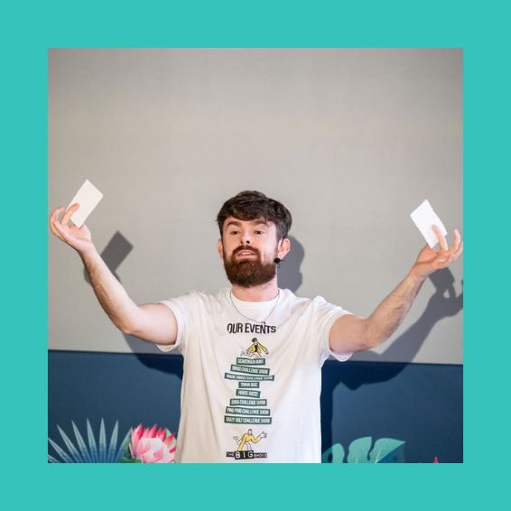 Events Host - Read MoreElliot is one of our go-to hosts when energy, enthusiasm and a welcoming vibe are key. He’s great at reading the room, breaking the ice, and guiding teams through every challenge with friendly confidence. Whether it’s a small group or a big crowd, Elliot’s warm personality and clear communication make every guest feel part of the fun from the start.