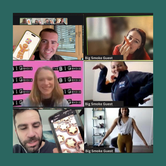 Looking for virtual Christmas events that bring remote teams together? The Big Smoke Events delivers fully hosted festive virtual team building games, including online Christmas parties, virtual festive scavenger hunts, virtual Christmas quizzes and Christmas bingo events for remote and hybrid teams.